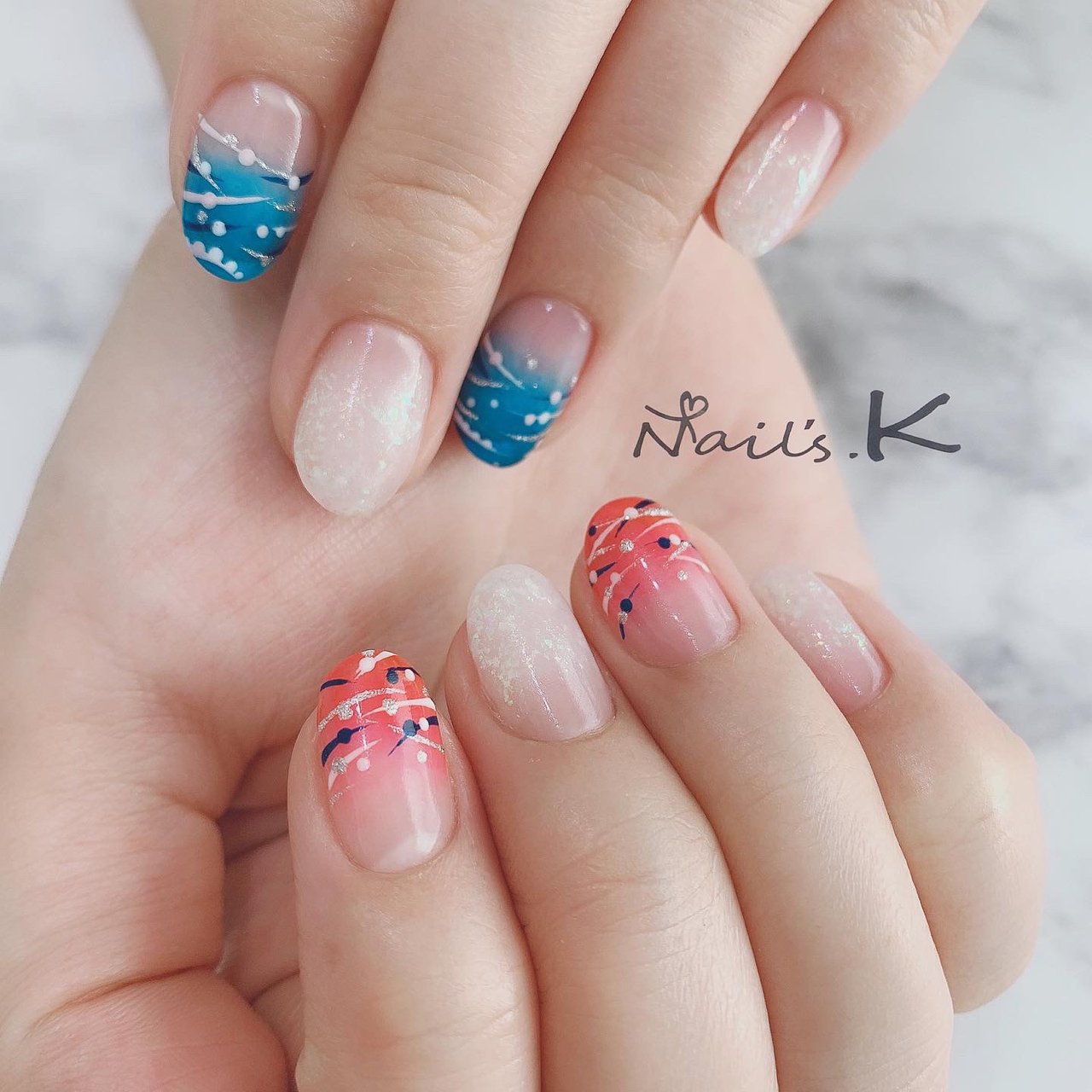 夏 浴衣 ハンド グラデーション 和柄 Nail S Kのネイルデザイン No ネイルブック
